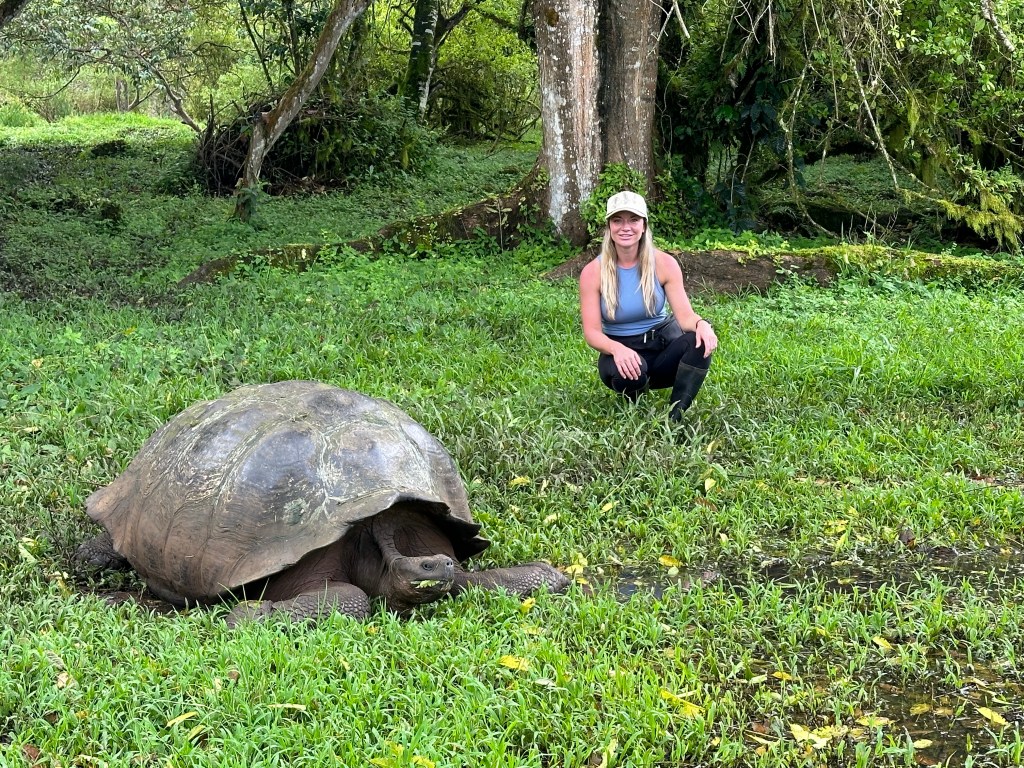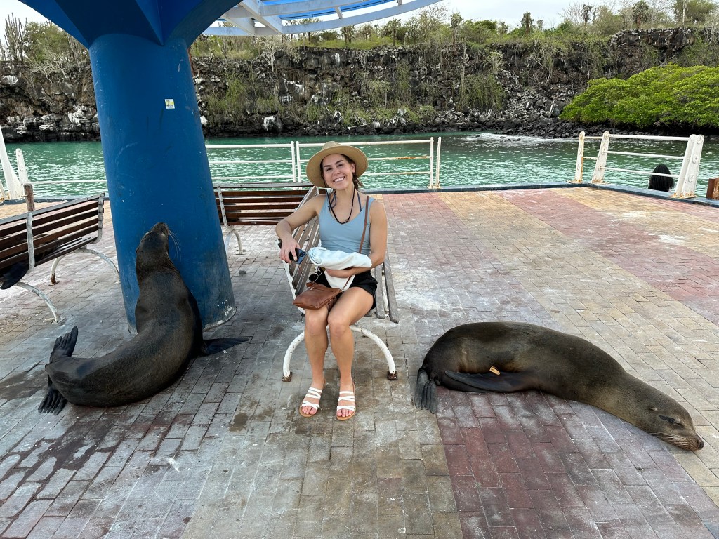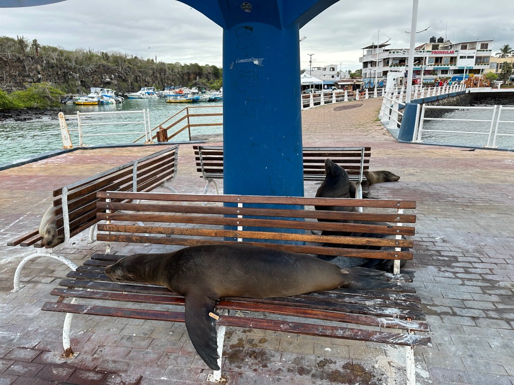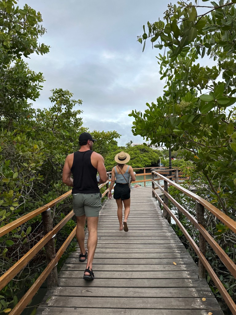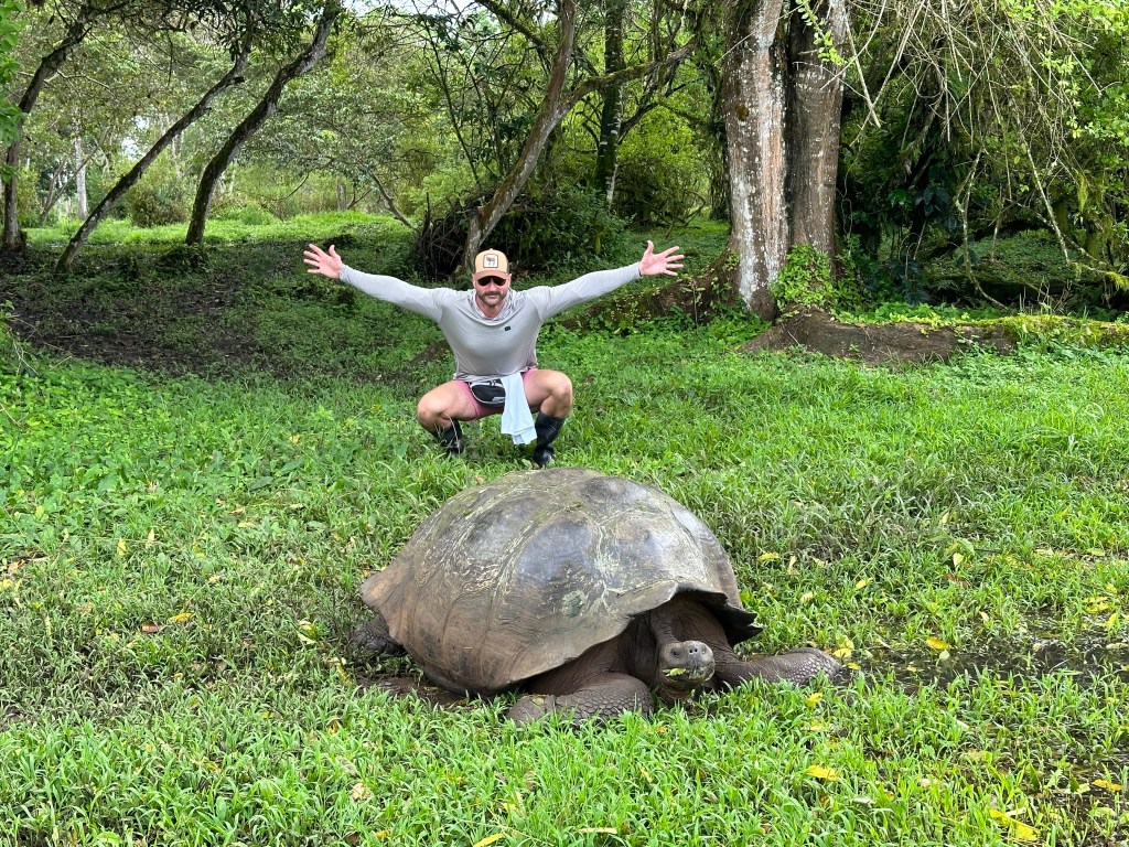 We had a blast exploring Santa Cruz by electric bike. The town is small and safe, there is so much culture, and the wildlife in amazing. The Charles Darwin museum was also incredible. It was just a short bike ride away from our hotel. We took a tour through one of the local tortoise farms and even hiked through a underground cave. We also hiked through the national park down to the beach and rented kayaks. Sea turtles and marine iguanas were everywhere and we saw a baby hammerhead shark. The sun is NEXT LEVEL intense. You cant pack enough sunscreen. There are sealions all over town, and watching the fisherman come in and all the blue footed boobies flocking and diving at the docks was one of our favorite late afternoon activities.
