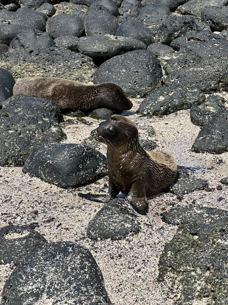 On San Cristobal we read about a beach well known for sea lion activity. We arrived to the island by a ferry (not for the faint of heart) and took a taxi with our snorkeling gear to the beach. There were sea lions and their pups EVERYWHERE. We immediately jumped in the water and got to coexist with these “water dogs” in their natural environment. They were so curious and would swim right up to us.